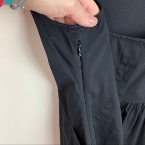 Theory Exclusively for Barneys NY Co-op Women’s Sleeveless Little Black Cotton Blend Dress w/Open Back and Gathered Skirt Sz 6. Small bleached section of fabric on front as shown. Side zip, two front pockets and just enough stretch for comfort. A classic look. Great for layering. Please see photos for additional details. Pit to Pit 17“ Waist 29“ Length 34“ Ships same/next day. All offers considered. Like this item for price drops.