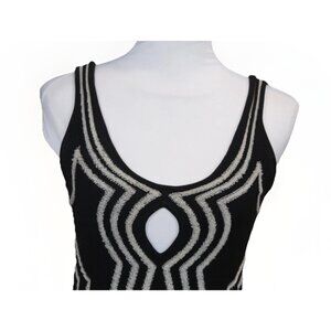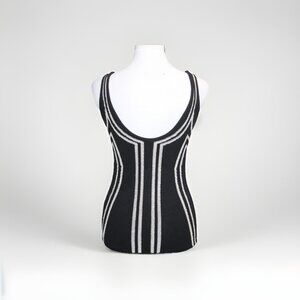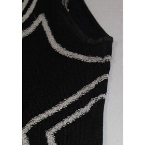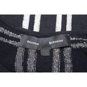 Proenza Schouler Intarsia Circle Cut Out Knit Top Silk/Rayon Black Sleeveless Shirt with front cut out and circular beige colored detail. Women's Size Small. Very good pre owned condition. Item has not been dry cleaned, please see photos, there is slight wear under the arms as shown. Measures 14.5" chest and 14" length measured from the back of the neck to the bottom hem. Smoke/pet free home. Fast professional shipping. 12 12/16/2025