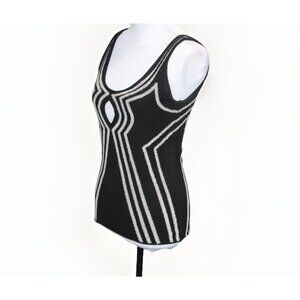 Proenza Schouler Intarsia Circle Cut Out Knit Sleeveless Top Silk/Rayon Black S