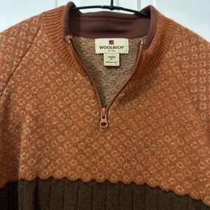 Woolrich Orange and Brown Zip-Up Sweater