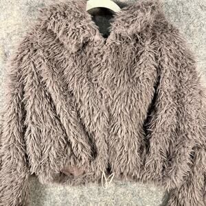 FREE PEOPLE FP ONE ZURI Parka Fuzzy Faux Fur Jacket Hoodie Coat Mint XS Purple