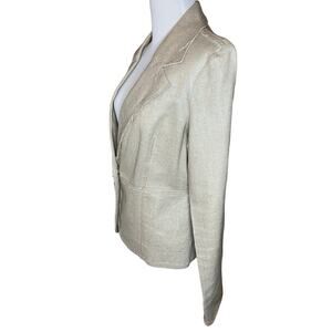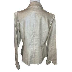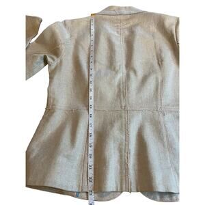 True Meaning Women’s Blazer Sz 12 Shimmery Gold Linen Blend Raw Hem Jacket