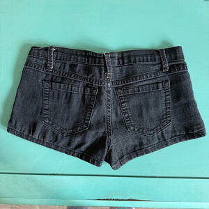 These black jean shorts from Forever 21 offer a timeless and casual look. Crafted with a classic cut-off design, they are perfect for everyday wear. The solid black color adds a versatile touch to your wardrobe. Good condition