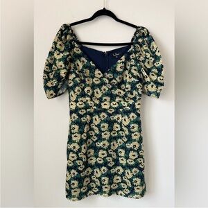 Lulu's Floral Inclusive Sunflower Navy Blue Yellow Puff Sleeve Mini Dress