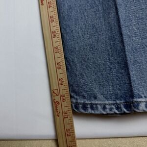 The product is a pair of vintage Polo Ralph Lauren jeans for women in size 12 with a 31-inch inseam. These 90s-inspired jeans feature a flag patch logo on the back pocket, adding a retro touch to the classic design. The medium wash in a solid blue color gives them a timeless look, while the high-rise waist and regular fit provide a comfortable and flattering silhouette. With a zip and button closure and pockets, these jeans offer both style and functionality for a fashion-forward wardrobe staple.