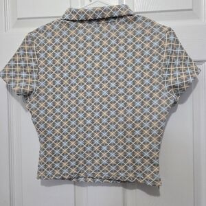 Cider Jacquard Quarter Zip Polo Geometric Short Sleeve Baby Blue Tee Sz Small