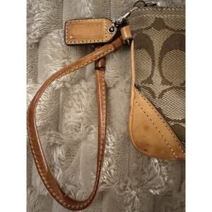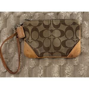Coach Signature Brown Leather Corner Zip Wristlet