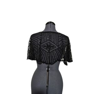 VINTAGE 1920s STYLE BLACK BEADED SEQUIN FLAPPER CAPELET SHAWL TOP One Size fit a
