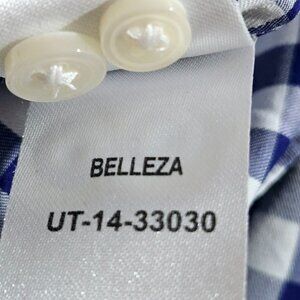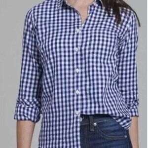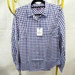 NWT UNTUCKit BELLEZA 100% COTTON GINGHAM NAVY BLUE/WHITE BUTTON FRONT SHIRT