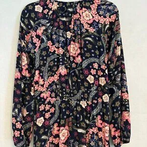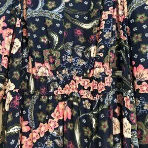 NWT Loft Petite Large Floral Shirred Flounce Long Sleeve Midi Dress