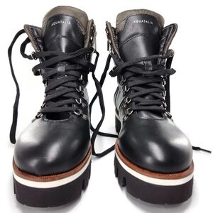 Aquatailia Morena Black & Olive Colorblock Leather Lace-Up Lug Sole Combat Boots