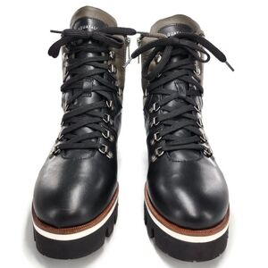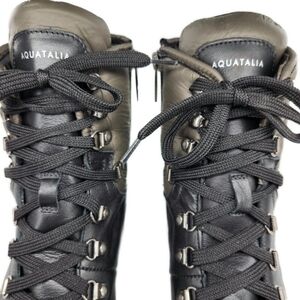 Aquatailia Morena Black & Olive Green Colorblock Bi-Color Leather Lace-Up Side Zip Close Lug Sole Hiking Combat Boots Made in Italy NWOT