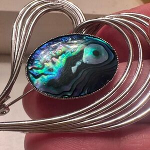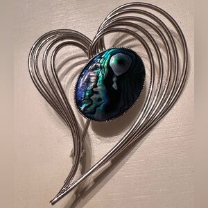 Elegant silver heart brooch featuring a stunning blue accent. Perfect for adding a touch of sophistication to any outfit.
