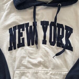 Stay cozy and stylish with this New York hoodie. Featuring a classic navy and cream design, it's perfect for casual outings. Perfect for men or kids too!