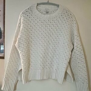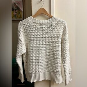 Stay warm and stylish with this cozy white knit sweater. Perfect for any occasion.