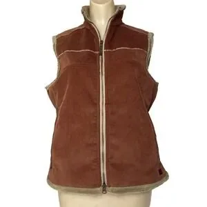 Woolrich Vest Womens M Corduroy Zip Faux Fur Lined Pockets Cinnamon color VTG?