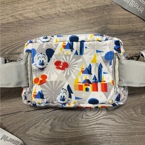 Colorful Disney themed crossbody and belt bag with adjustable straps. Super convenient to be used as either a purse, crossbody or belt bag (Fanny pack). Purchased in the parks. Used only twice. No stains or issues.