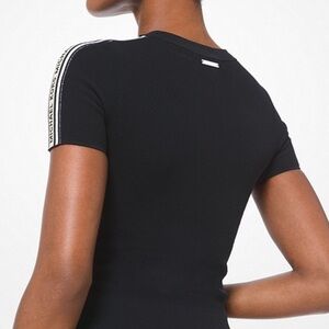 Michael Kors Logo Tape Textured Knit Short-Sleeve Sweater