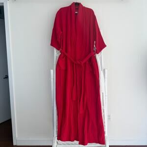 Muslin Comfort Cotton Robe L/XL Red Full Length Gauze Spa Relax Loungewear