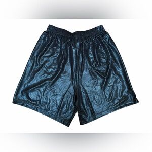Brand new with tags. Deadstock Savage X Fenty Chain Reaction basketball shorts in a black metallic foil finish. Designed for killer looks with maximum impact, these feature a relaxed fit, elastic waistband, and signature holographic 3D logo patch on the front left leg. Statement athleisure piece that works for Y2K, mcbling, streetwear, and lounge styling. Sold out style and hard to find.