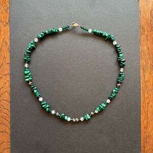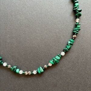 TAGS: Gemstone Necklace, Green Stone Necklace, Beaded Necklace, Natural Stone Jewelry, Sterling Silver Necklace, Healing Crystal Necklace, Boho Gemstone Necklace, Malachite Beaded Necklace, Green Malachite Jewelry, Sterling Silver Gemstone Necklace