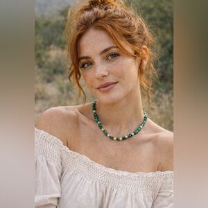 INFO: Known as the stone of transformation, malachite promotes healing by releasing trauma and acting as a protective barrier against negative energies. Rich and vibrant, this beaded gemstone necklace features natural green stone beads paired with 925 sterling silver accents for a timeless look. It supports physical well-being through potential detoxification and pain relief. Malachite is also associated with the heart chakra, believed to foster love, compassion, and empathy.