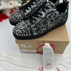 Men’s Christian Louboutin Louis Junior, black storm print leather size 43