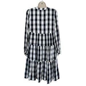 Anthropologie Maeve Women's Sz XS Amber Black & White Plaid Tiered Tunic Dress
