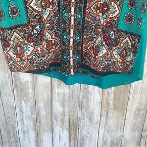 Stylish teal top with a vibrant paisley pattern. Perfect for casual outings.