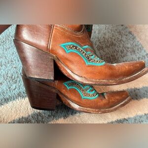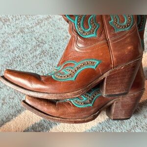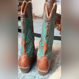 Lucchese Brown and Teal Heeled Western Boots