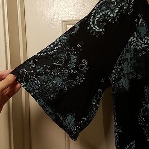Mudd top. Paisley print, banded bottom. Only worn a few times. Sizd Small. I'm not sure if this is misses or junior sizing, but I believe Mudd is Junior's. Dark navy base with two shades of a blueish green paisley print.