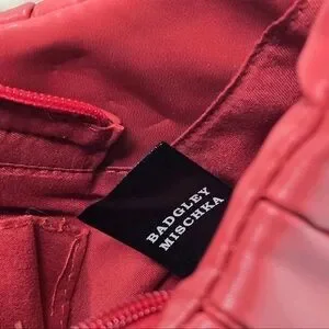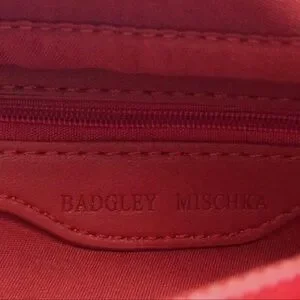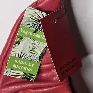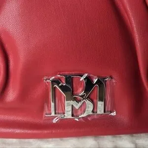 This elegant red hobo bag by Badgley Mischka showcases a beautifully ruched leather design, enhancing its classic crescent shape. The smooth, glossy finish and subtle metallic detail add a touch of sophistication, making it a perfect accessory for any occasion.