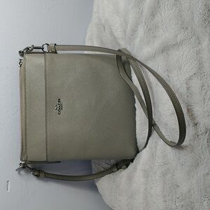 Coach Kitt Messenger Crossbody Bag Gray Crossgrain Leather Slim File Purse