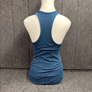 The Athleta Blue Fitted Sleeveless Tank Top is a stylish and versatile piece, perfect for any wardrobe. Crafted from a stretchy cotton-blend jersey knit, it offers a comfortable and flattering fit. The scoop neckline and gentle ruching along the sides add a touch of elegance to its sleek design. Ideal for layering or wearing on its own, this tank top is a must-have for any fashion-forward individual.