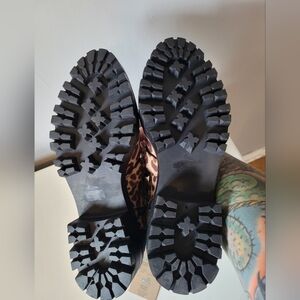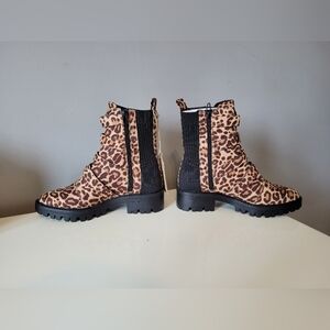 Design Lab Electra Leopard Print Buckle Strap Combat Boots, BNWT, Size 7