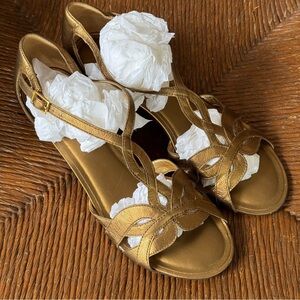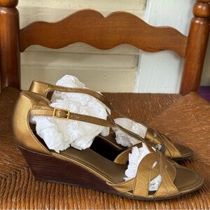 Talbots Metallic Bronze Leather Cutout Wedge Sandals | Size 7B Made in Brazil