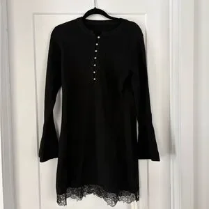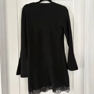 Stylish black dress with ribbed texture. Features delicate lace accents.