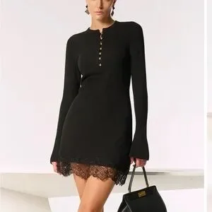 Commense Black Ribbed Dress with Lace Detail