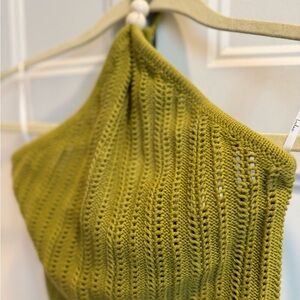 Lulus Serena Olive Green Sweater Knit Halter Cropped Top 💚 Size XS