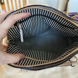 Chic Kate Spade satchel in creamy off white. Features elegant handles and a structured design.