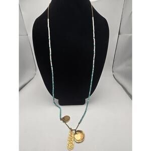 Chan Luu 38" Turquoise White Quartz Necklace Gold Coin