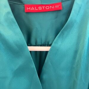 Vintage 80s Halston Heritage Emerald Green Long Sleeve Satin Dress
