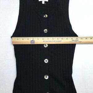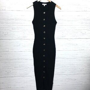 Good American black rib knit sleeveless dress; button front, bodycon / form fitting, soft and stretchy