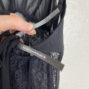 By Anthropologie Ruffle-Strap Sheer Lace Midi Dress Black Size S