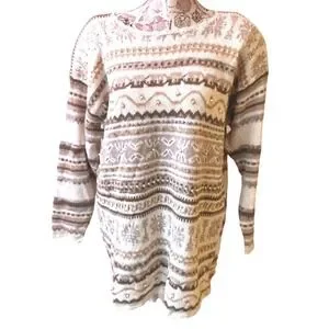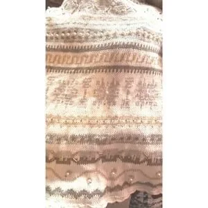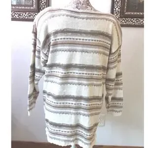 Vintage cottagecore LONG knit Women's Sweater 14 16 Beige Embellished grandmacor