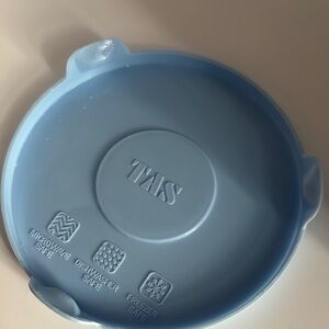 Keywords: vintage citrus pitcher, retro kitchenware, orange slice drinkware, glass lemonade jug, fruit-themed decor, unbranded pitcher, blue lid pitcher, summer serveware, nostalgic home accents, retro drink server
