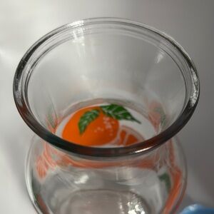 Serve up sunshine with this vintage citrus-themed glass pitcher, featuring bright orange slice graphics and a bold blue lid. Perfect for summer entertaining, lemonade stands, or retro kitchen vibes. Its cheerful design adds a splash of nostalgia and charm to any table or shelf.