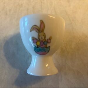 Perfect Condition—Charming white ceramic egg cups featuring a playful bunny design. Perfect for adding a touch of whimsy to your dining table.