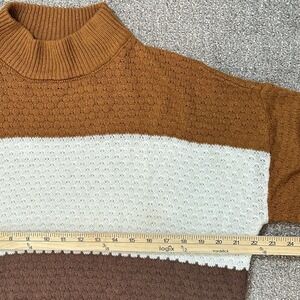 Women's Color Block Mock Neck Sweater - Size MEDIUM - Rust Cream Brown