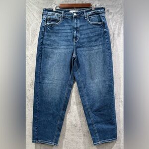 The Kancan Jeans Women’s Size 31 High Rise Slim Barrel Leg Jeans in a medium wash are a stylish and flattering addition to any wardrobe. Made from a comfortable cotton blend denim, these jeans feature a slim fit and high rise waist for a trendy and on-trend look. The ankle length and barrel leg give these jeans a modern and bohemian vibe, perfect for pairing with your favorite tops and shoes for a chic and versatile outfit. Easy to care for with machine washable instructions, these jeans are a must-have for any fashion-forward woman.